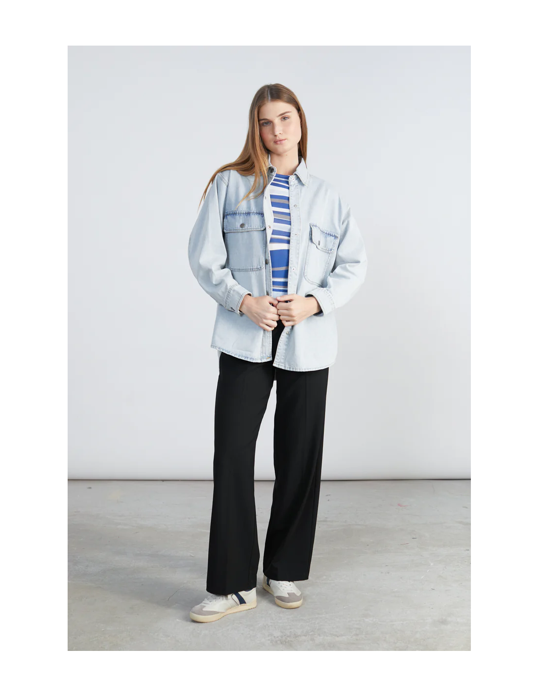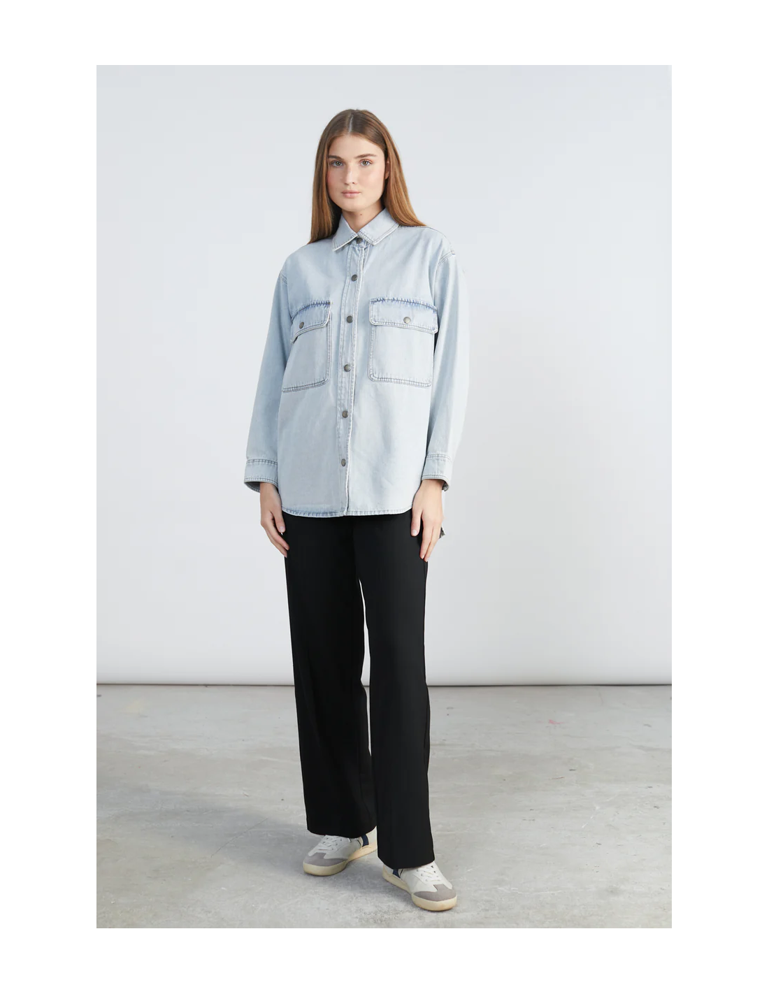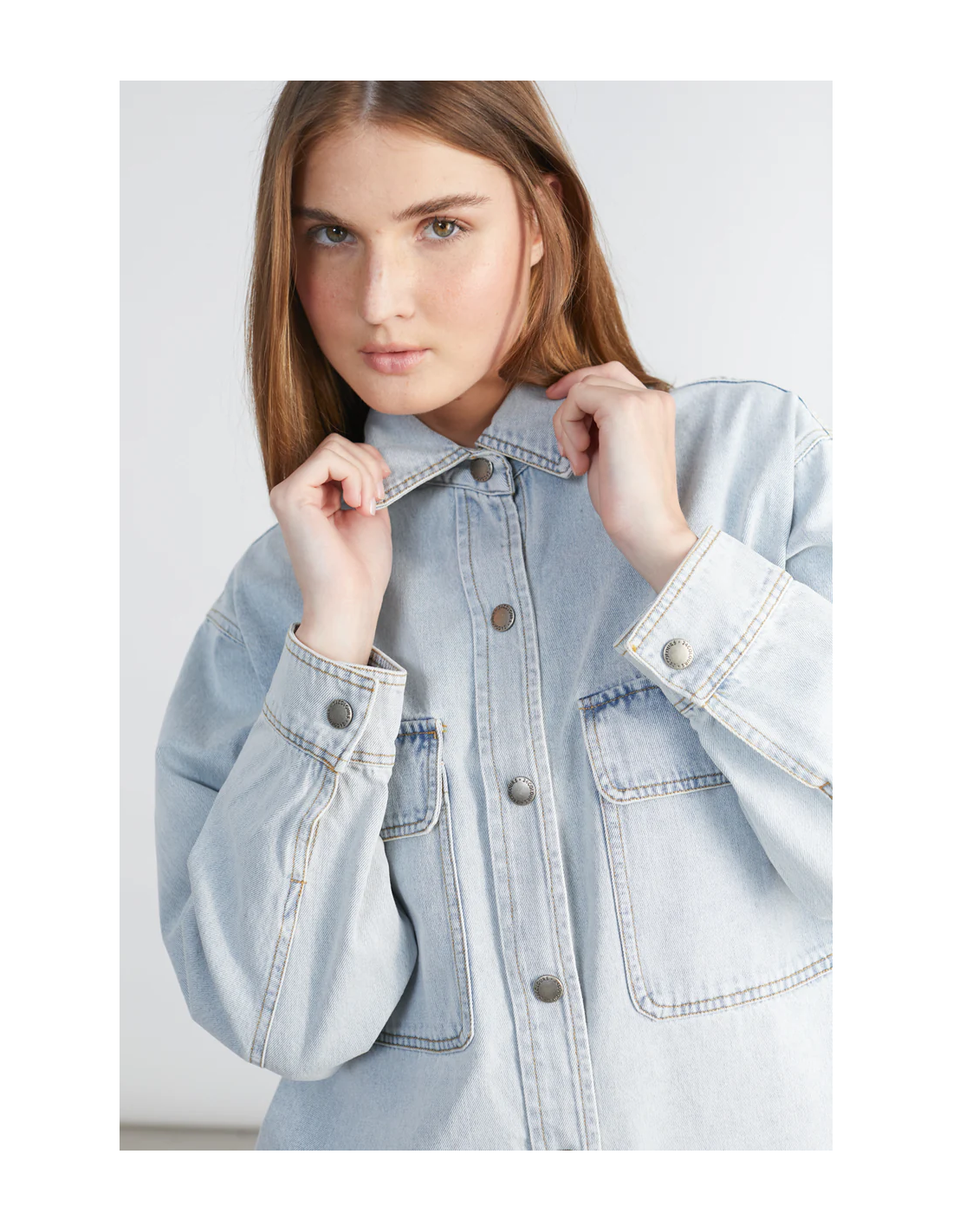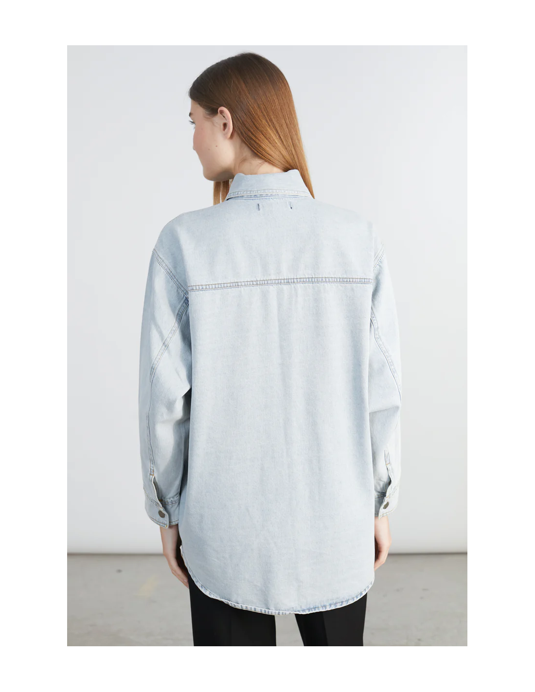 Μπουφάν πουκάμισο από μπλε τζιν ύφασμα. Υλικό: 100% βαμβάκι. Μέγεθος πλάτης 38: 79 cm.
