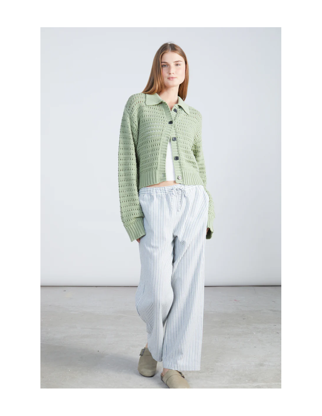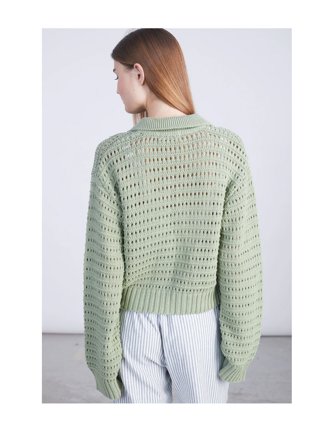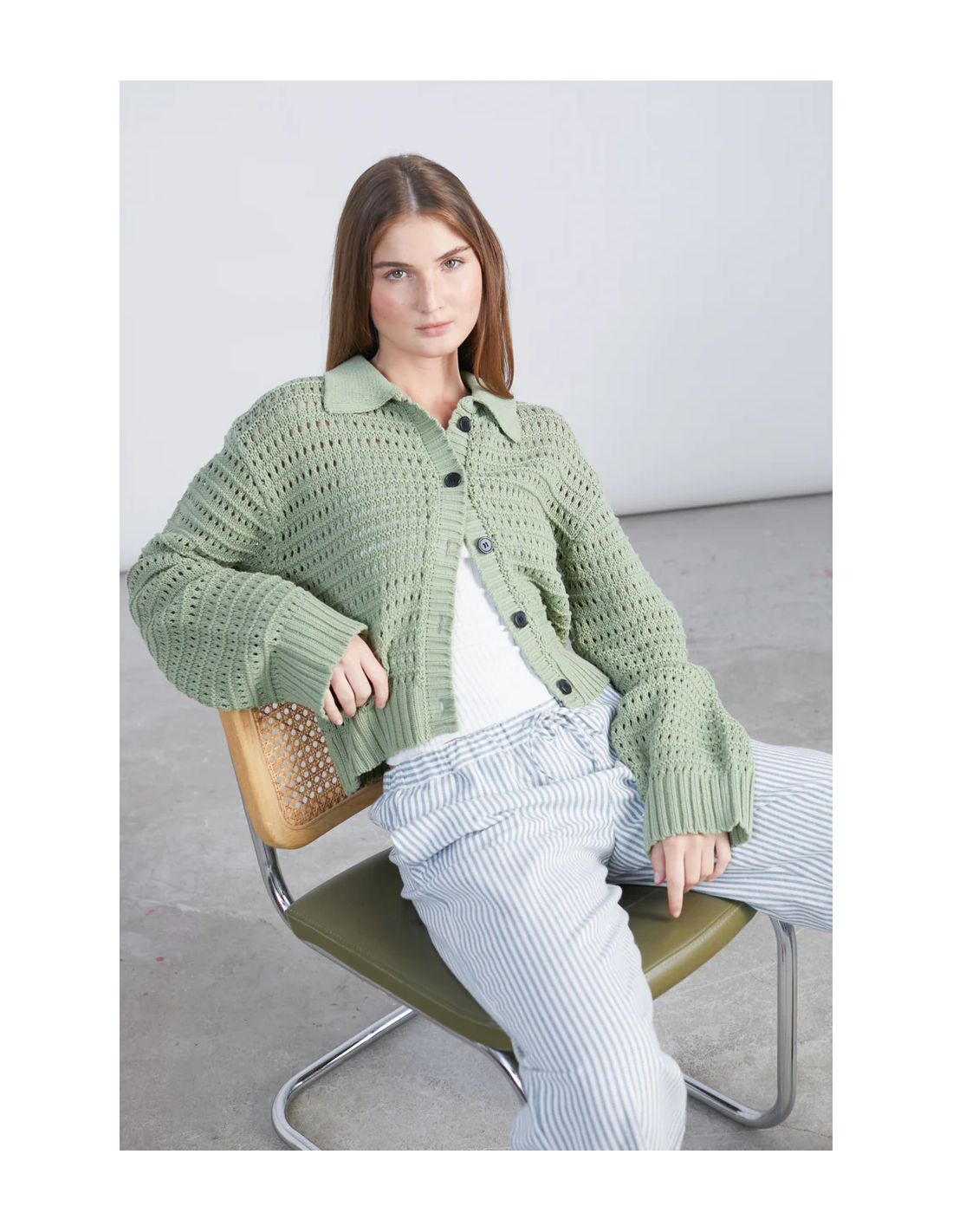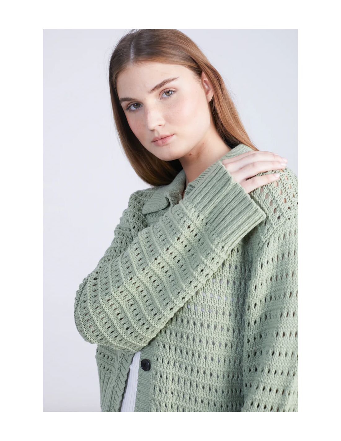 Πλεκτή ζακέτα με διάτρητο σχέδιο σε πράσινο χρώμα
