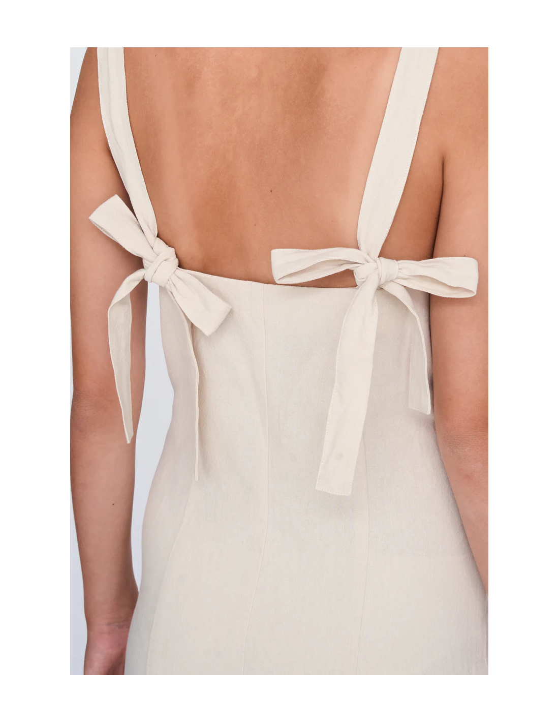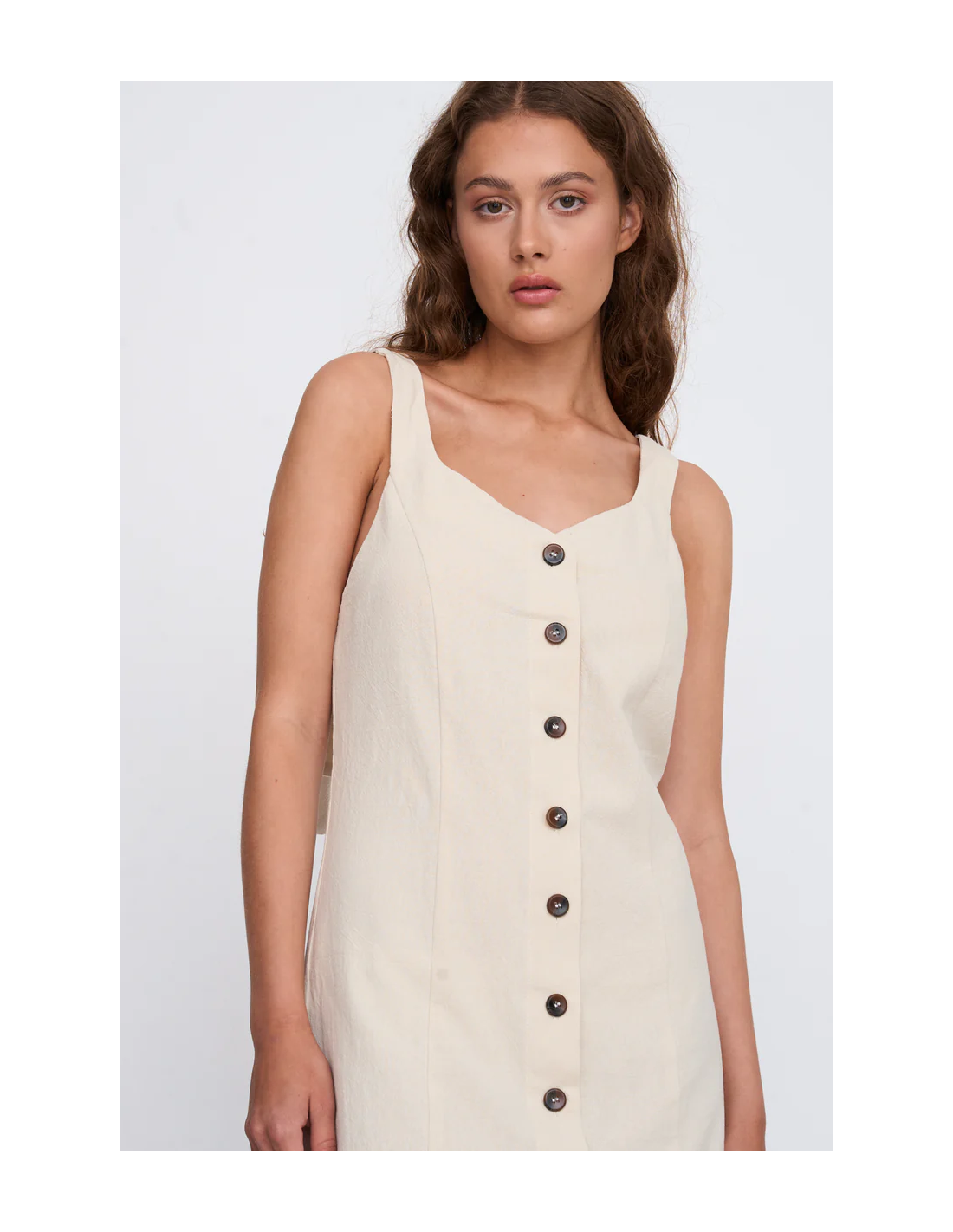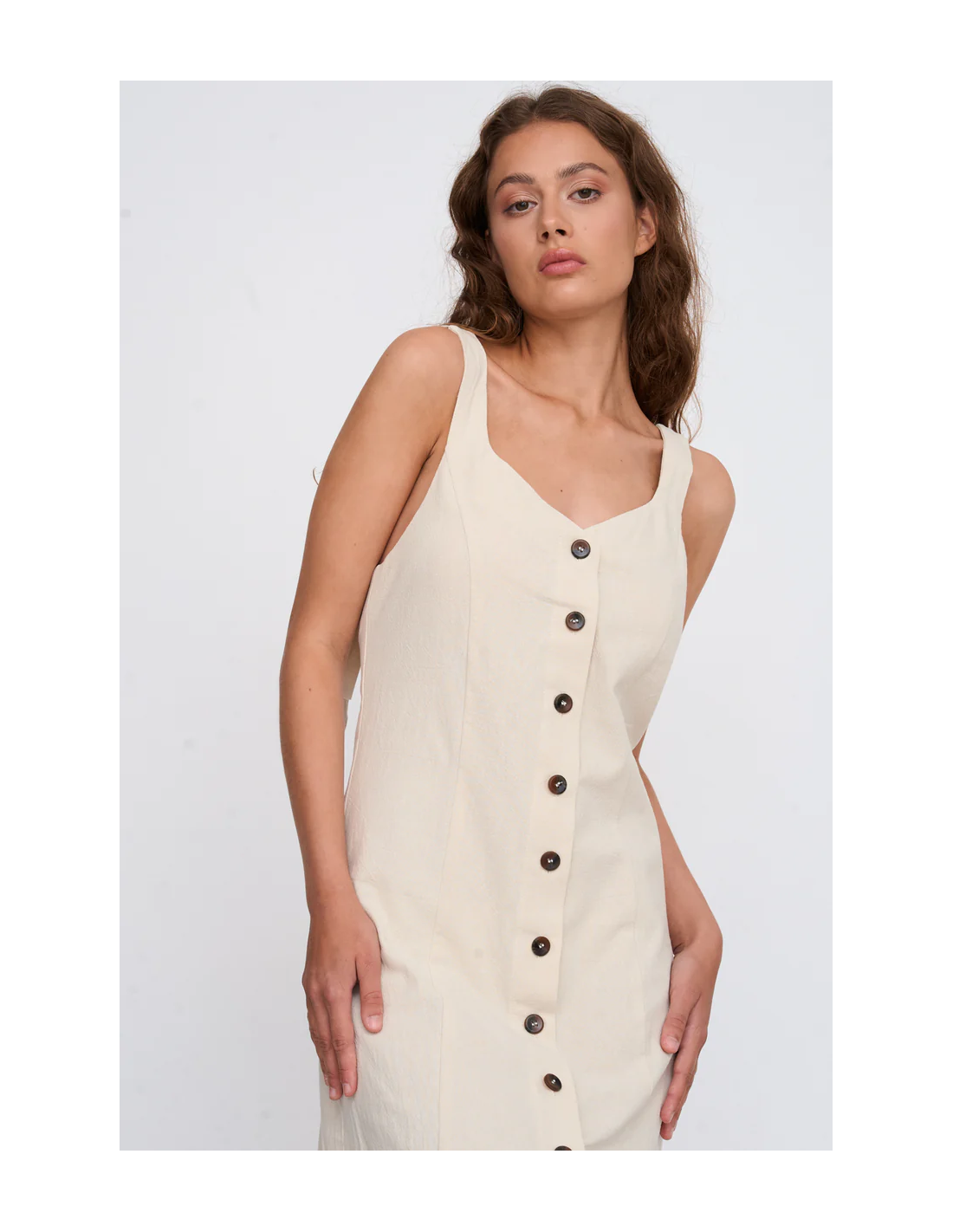 Μπεζ κοντό φόρεμα με φαρδιές τιράντες και κουμπιά