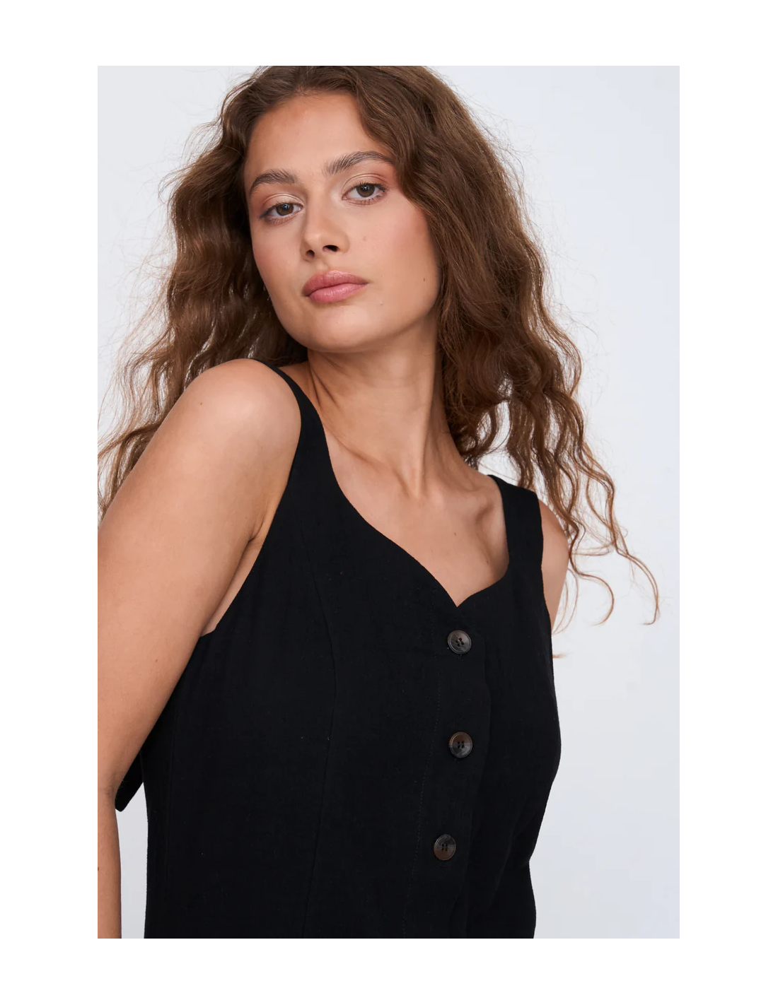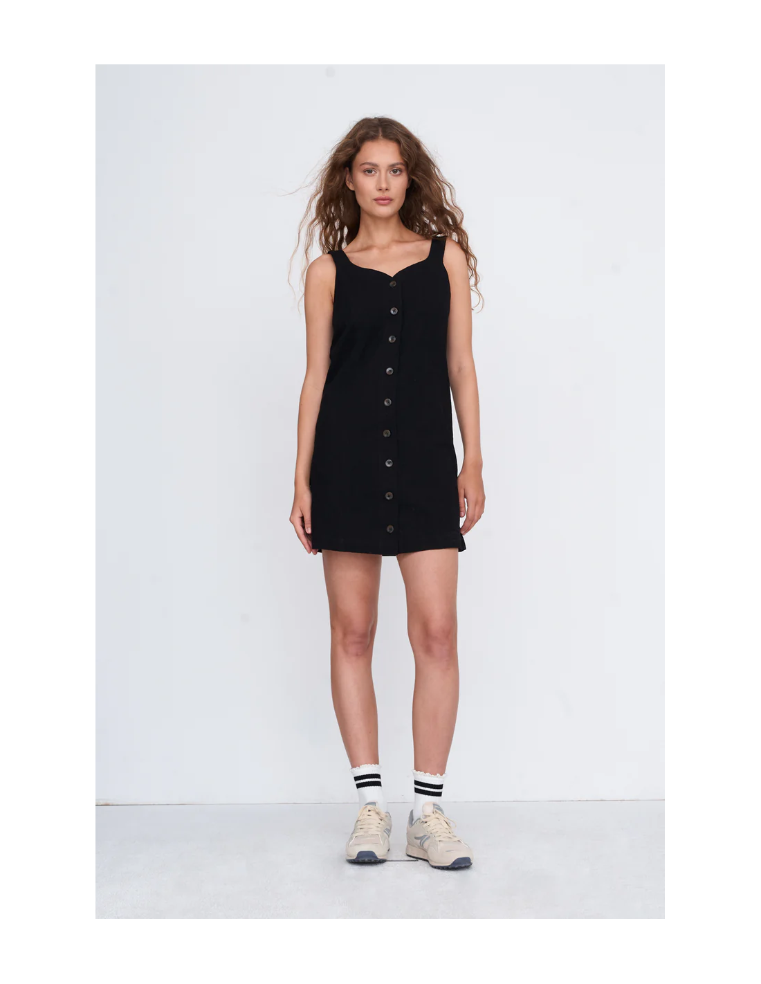 Μαύρο κοντό φόρεμα με φαρδιές τιράντες και κουμπιά