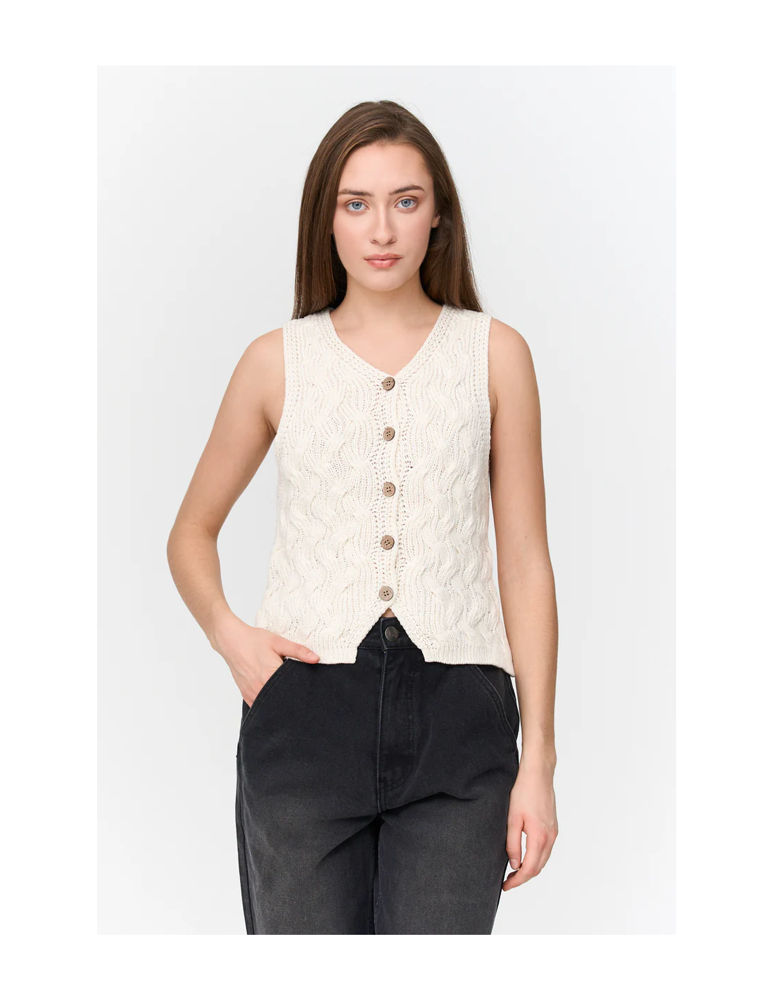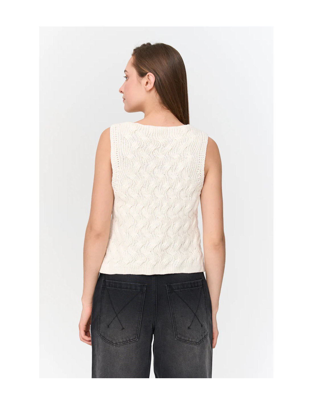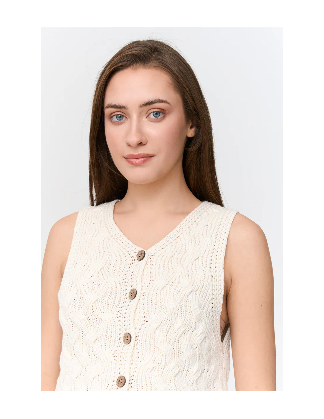 Λευκό πλεκτό γιλέκο με σχέδιο