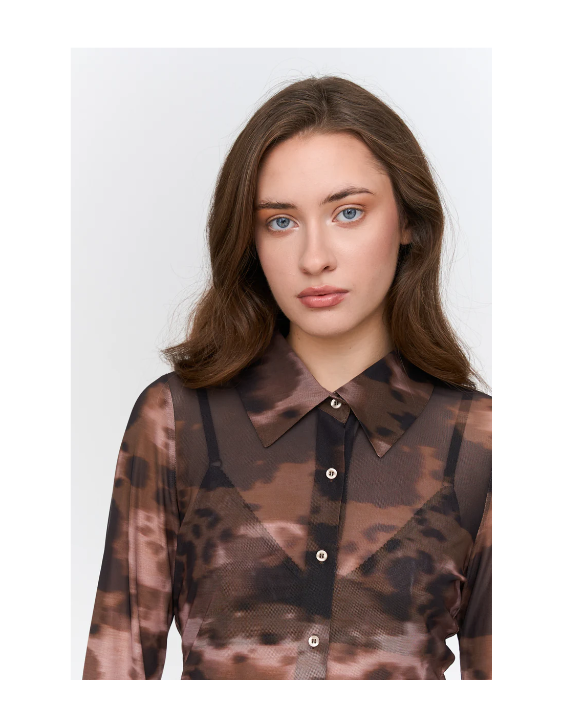 Πουκάμισο από mesh με αφηρημένο μοτίβο από δέρμα αγελάδας