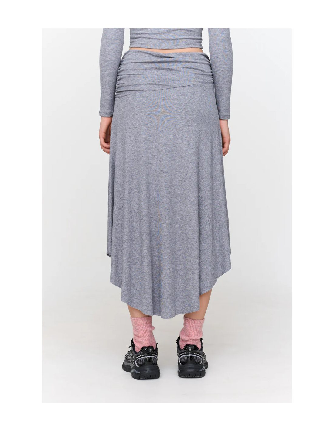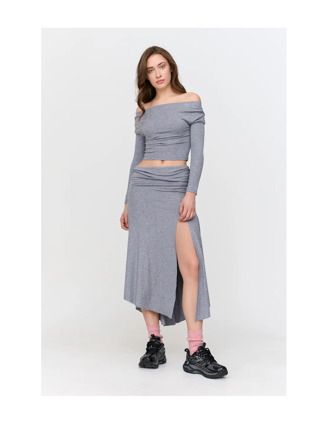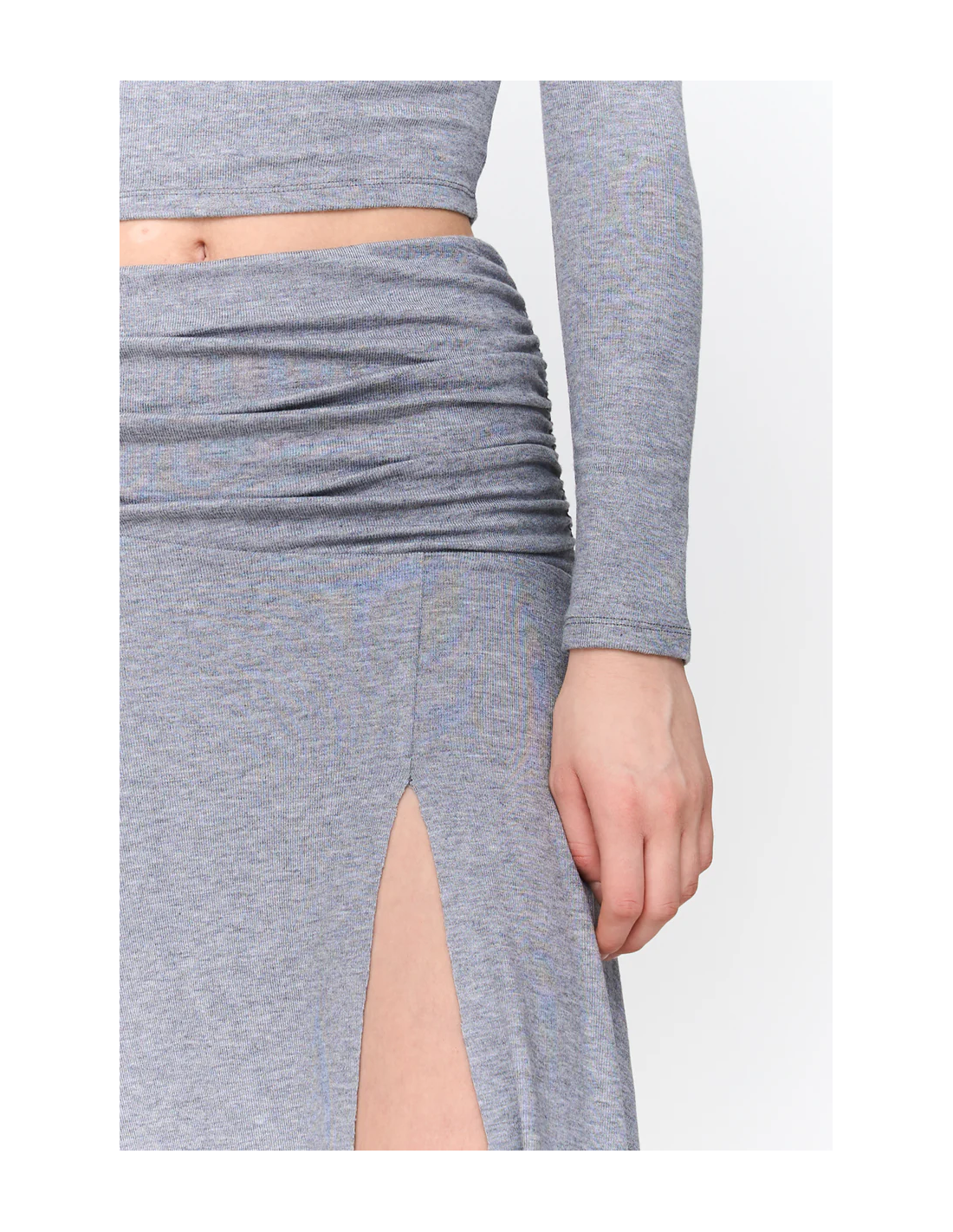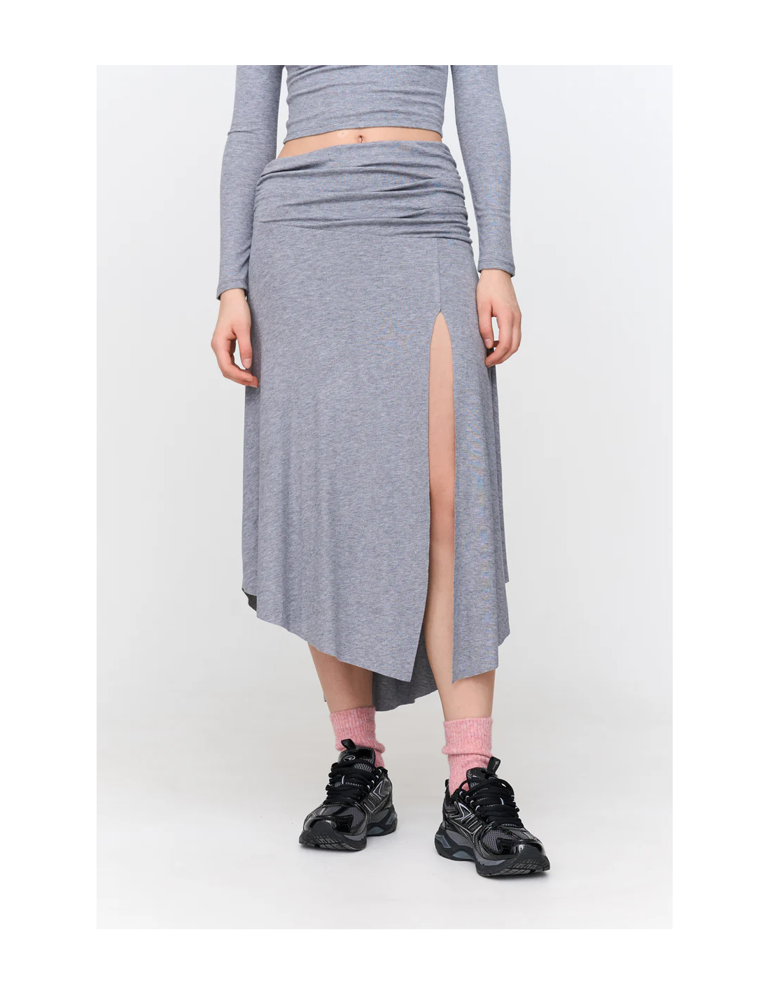 Μίντι φούστα με ελαστικές μανσέτες και σχισμή, σε γκρι χρώμα