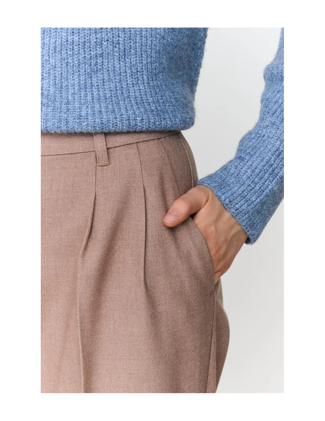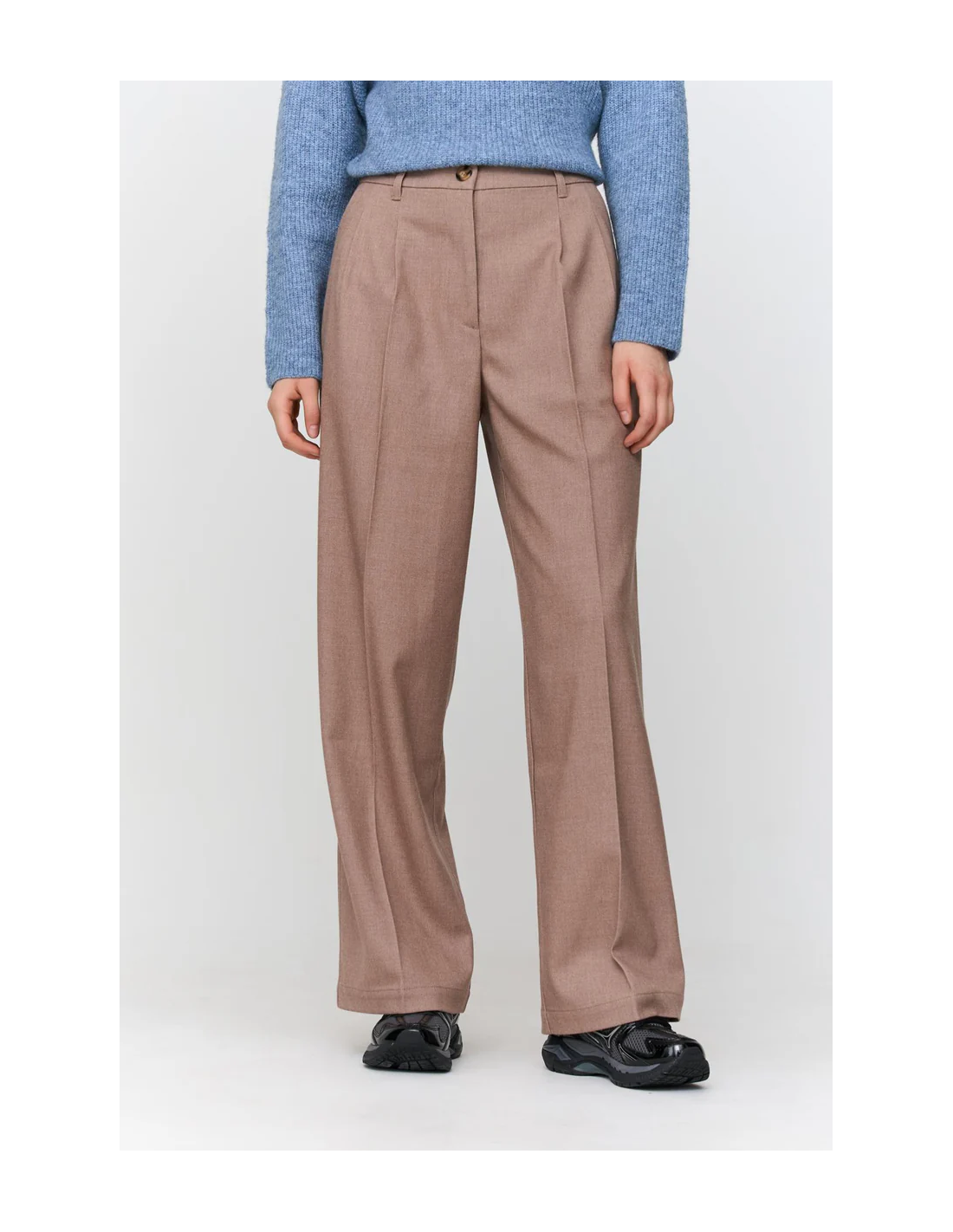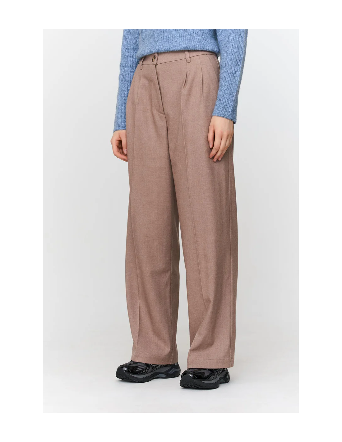 Παντελόνι με πτυχώσεις σε μπεζ χρώμα με φαρδιά μπατζάκια