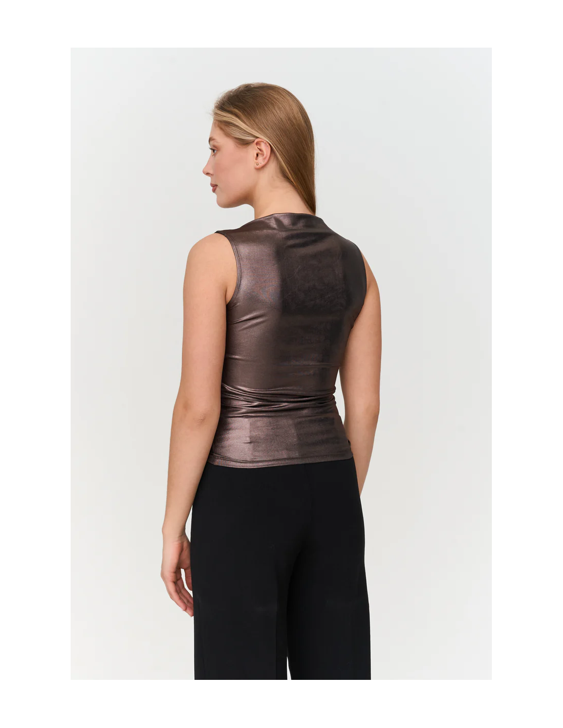 Μπλούζα με γιακά τύπου καταρράκτη σε καφέ χρώμα