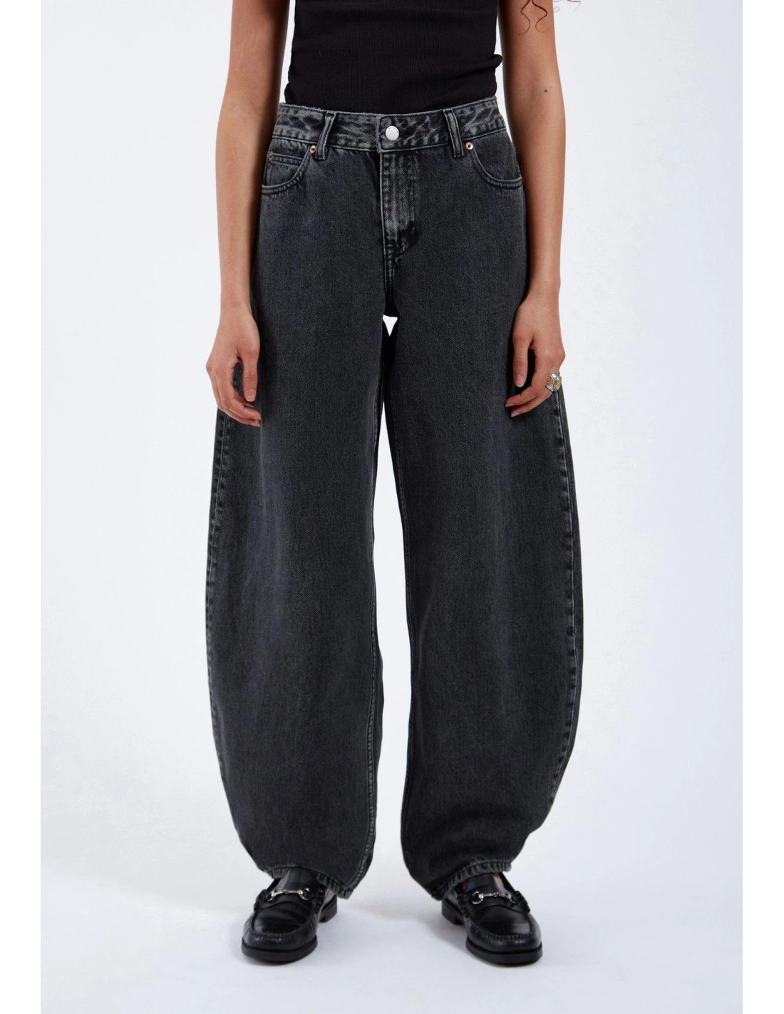 Με mid-waist γραμμή, φαρδιά πόδια και στρογγυλεμένη σιλουέτα, προσφέρει μοντέρνο στυλ με urban αισθητική. Το ξεθωριασμένο aged black χρώμα δίνει αυθεντικό vintage χαρακτήρα, ιδανικό για statement εμφανίσεις.