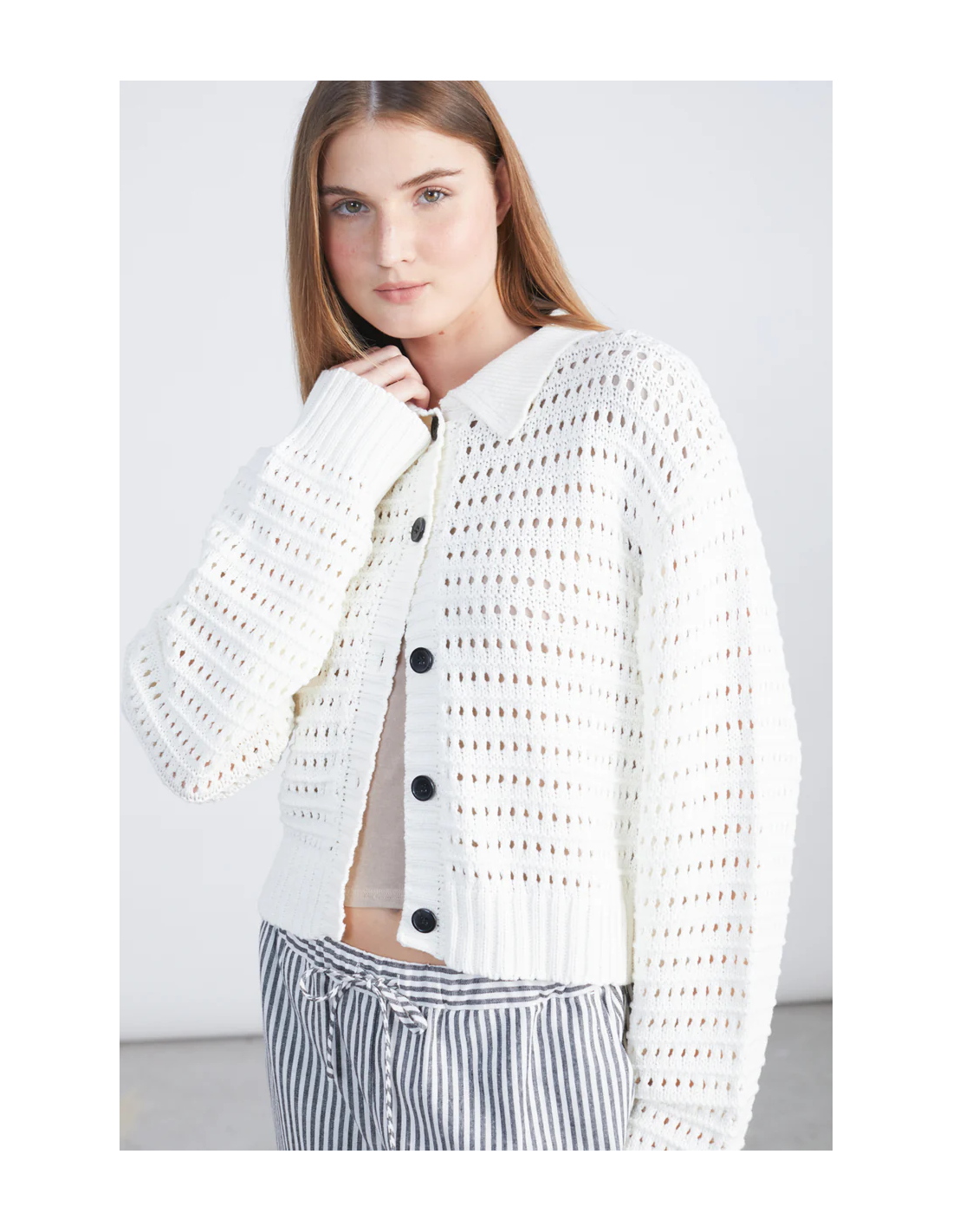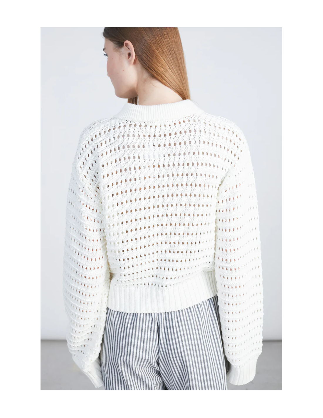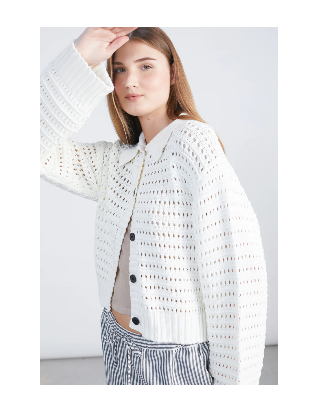 Πλεκτή ζακέτα με διάτρητο σχέδιο σε λευκό