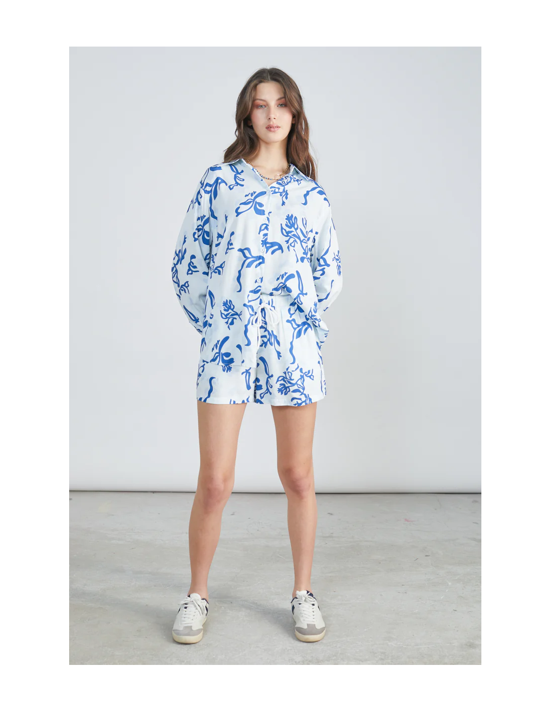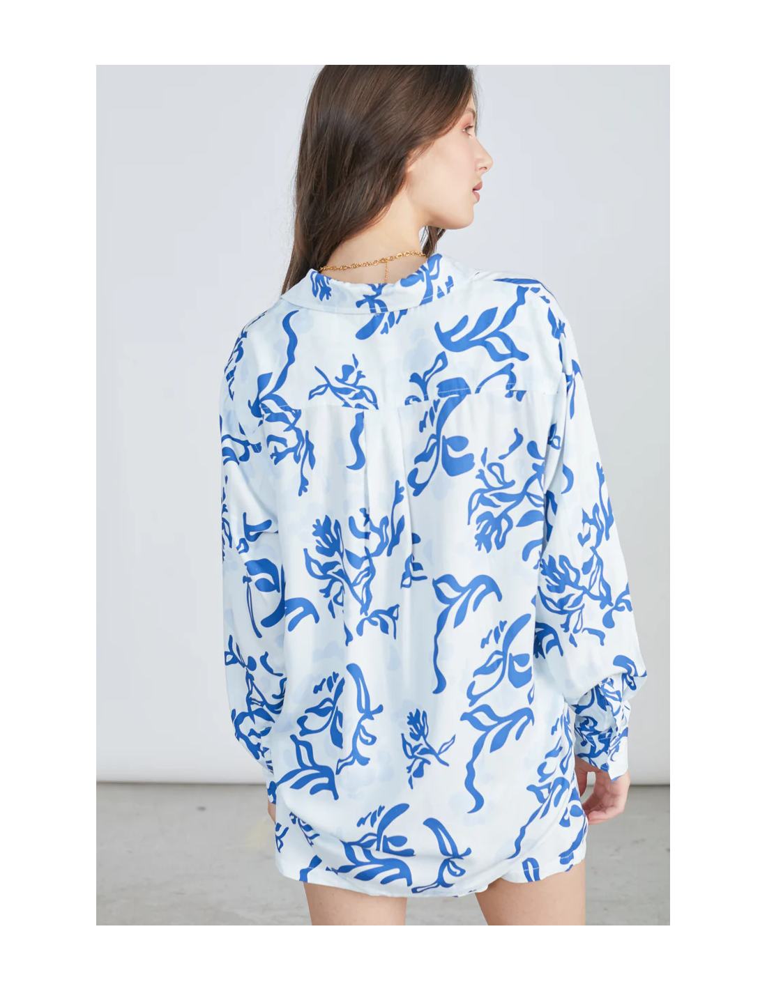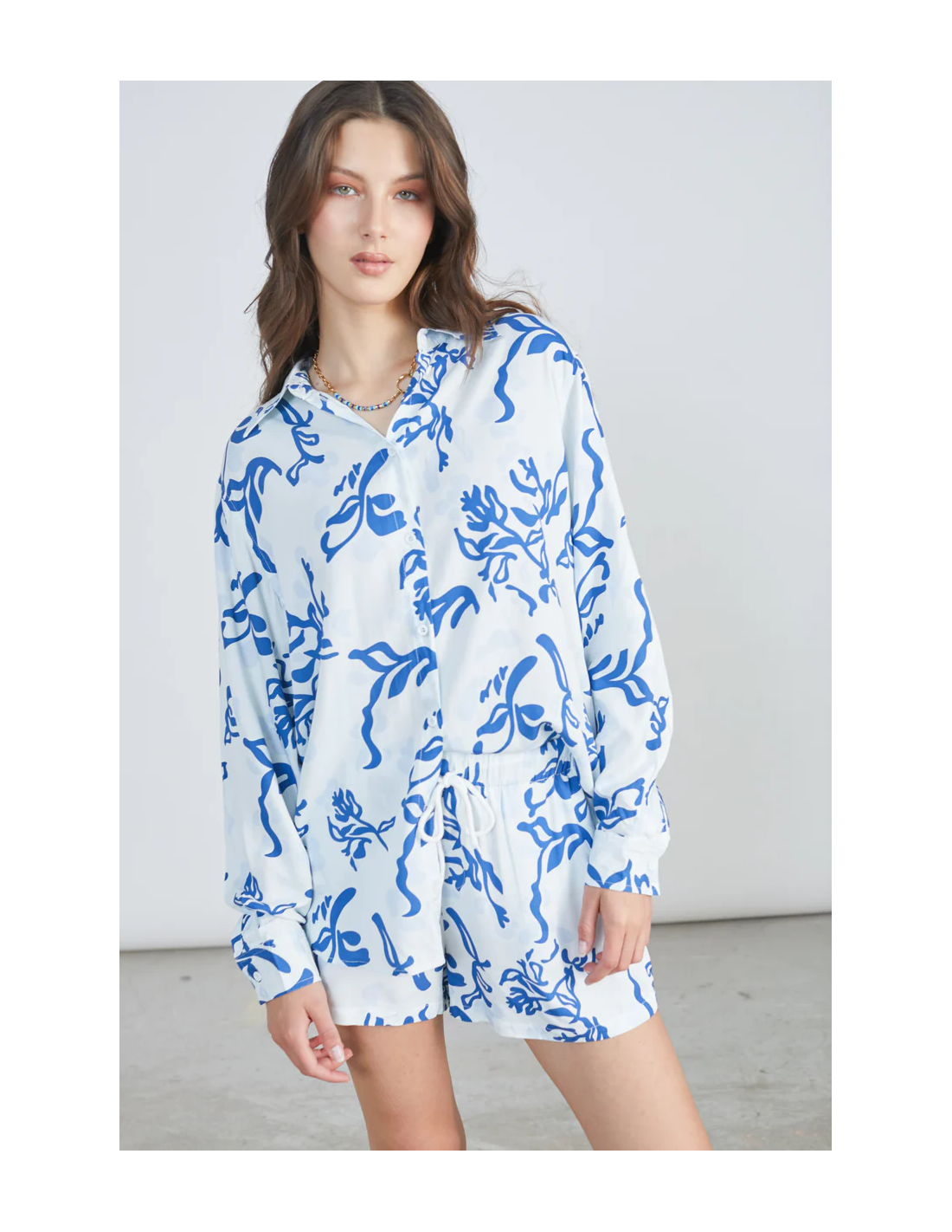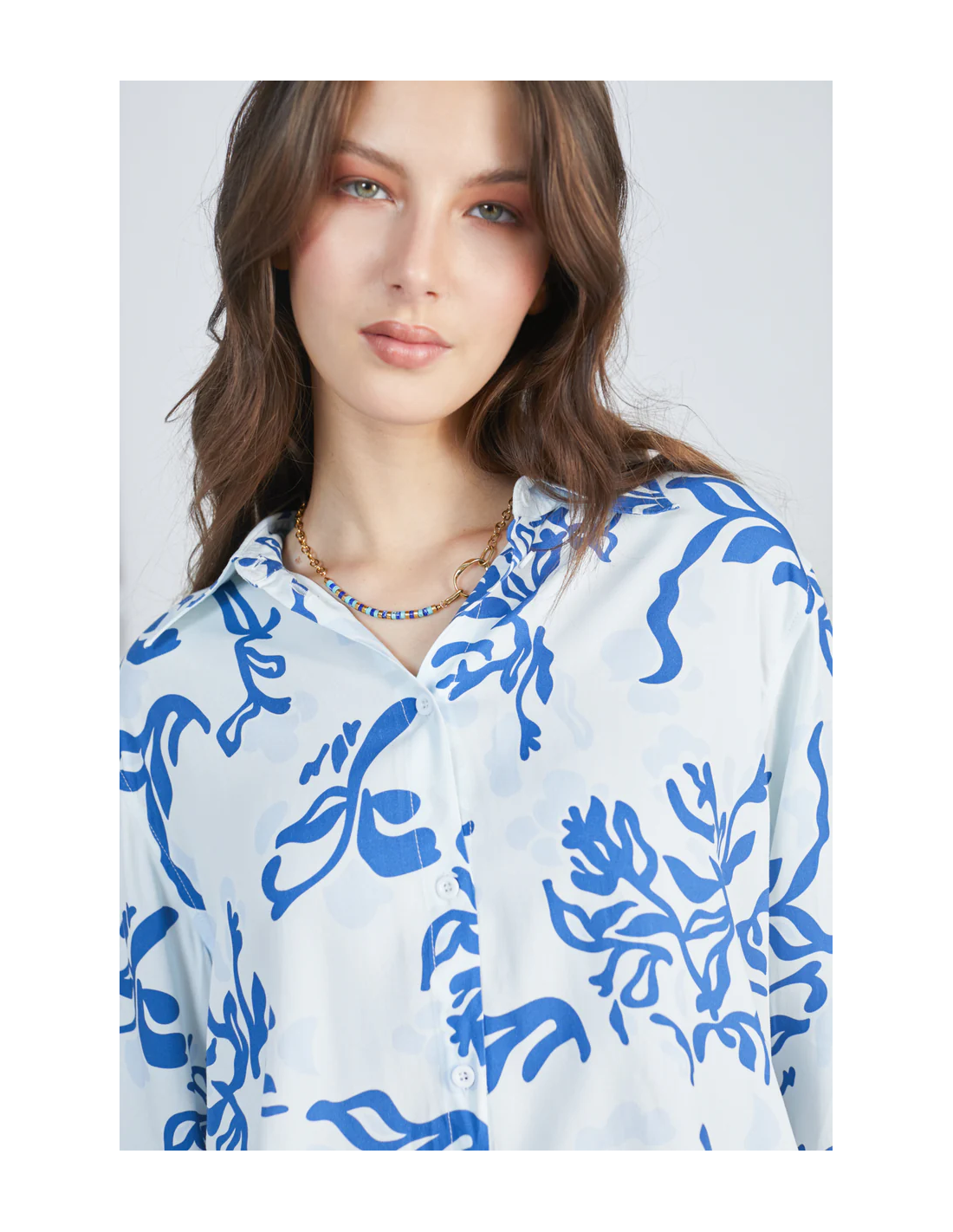 Κλασικό μπλε εμπριμέ πουκάμισο με μακριά μανίκια