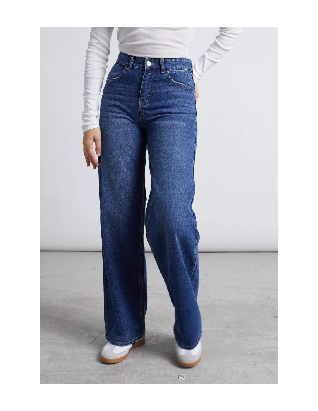 Τζιν σε ίσιο πόδι σε γαλάζιο