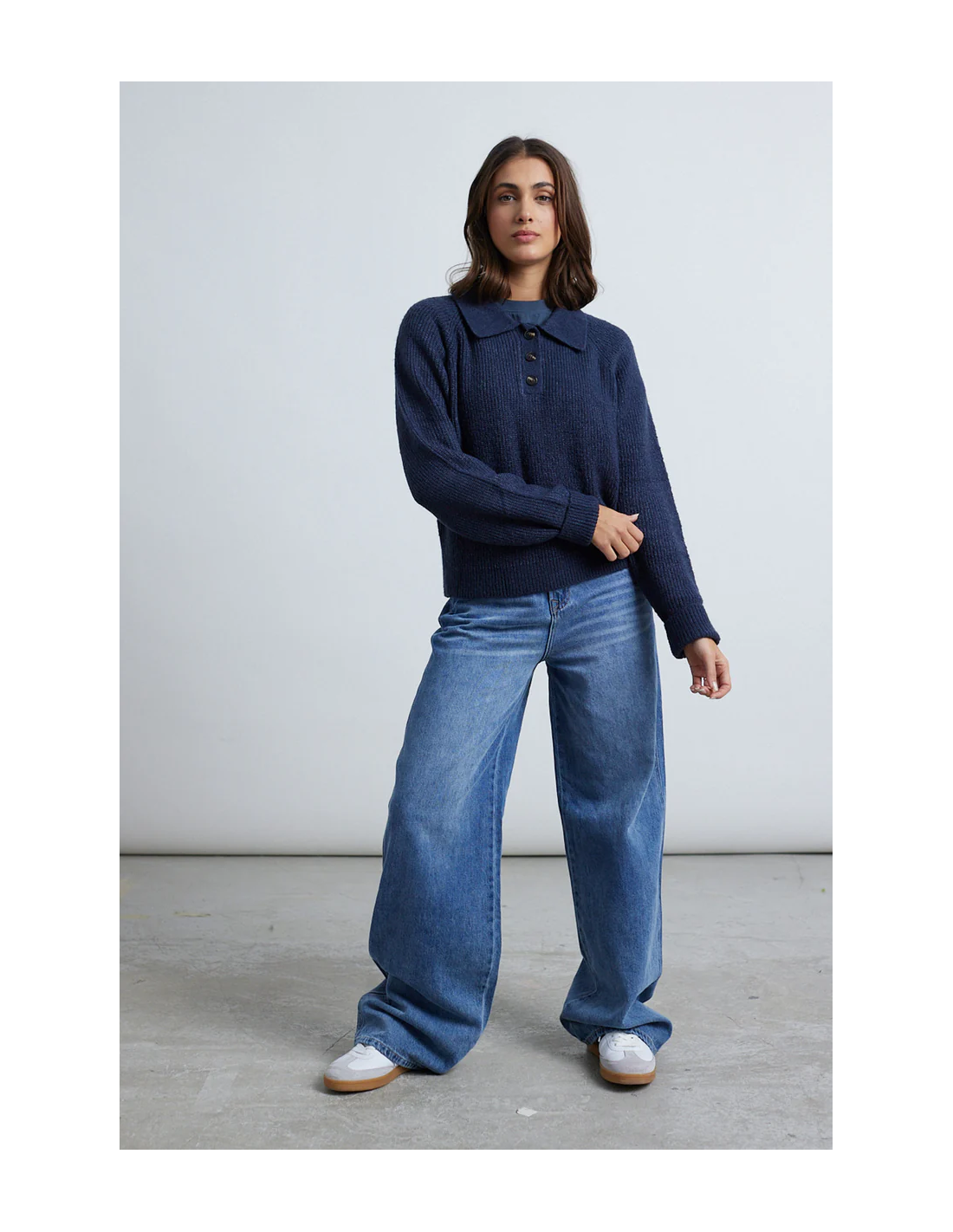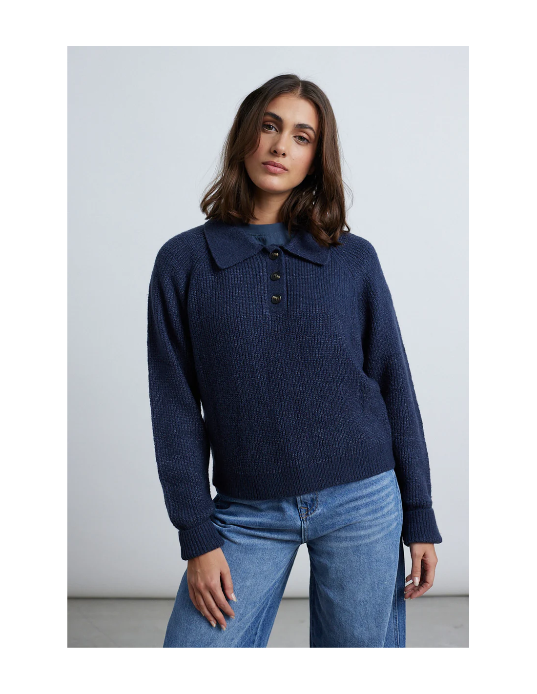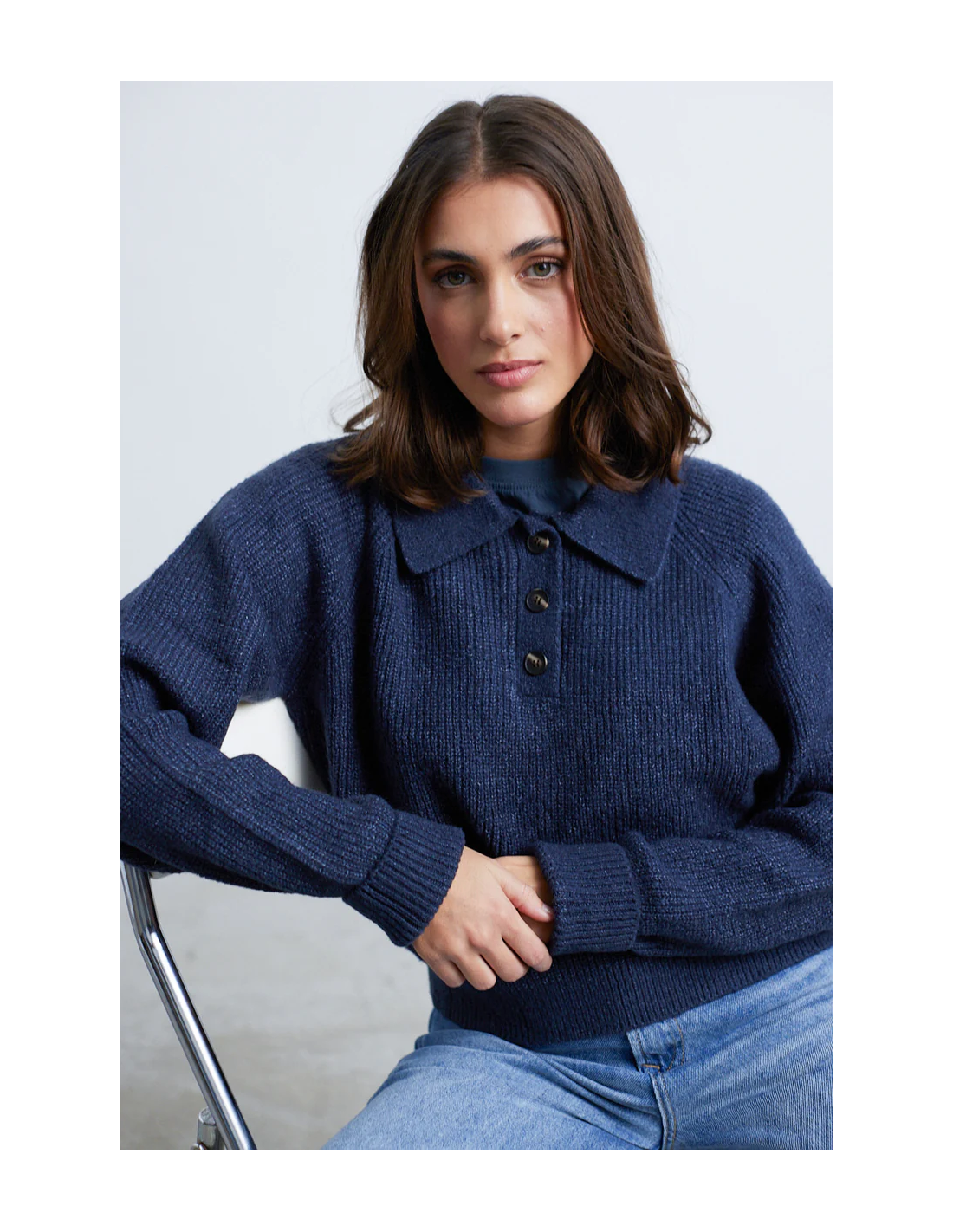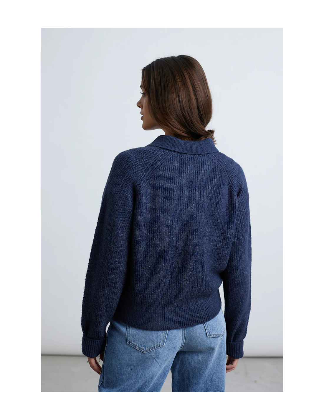 Μπλε πλεκτό πουλόβερ με κλασικό γιακά